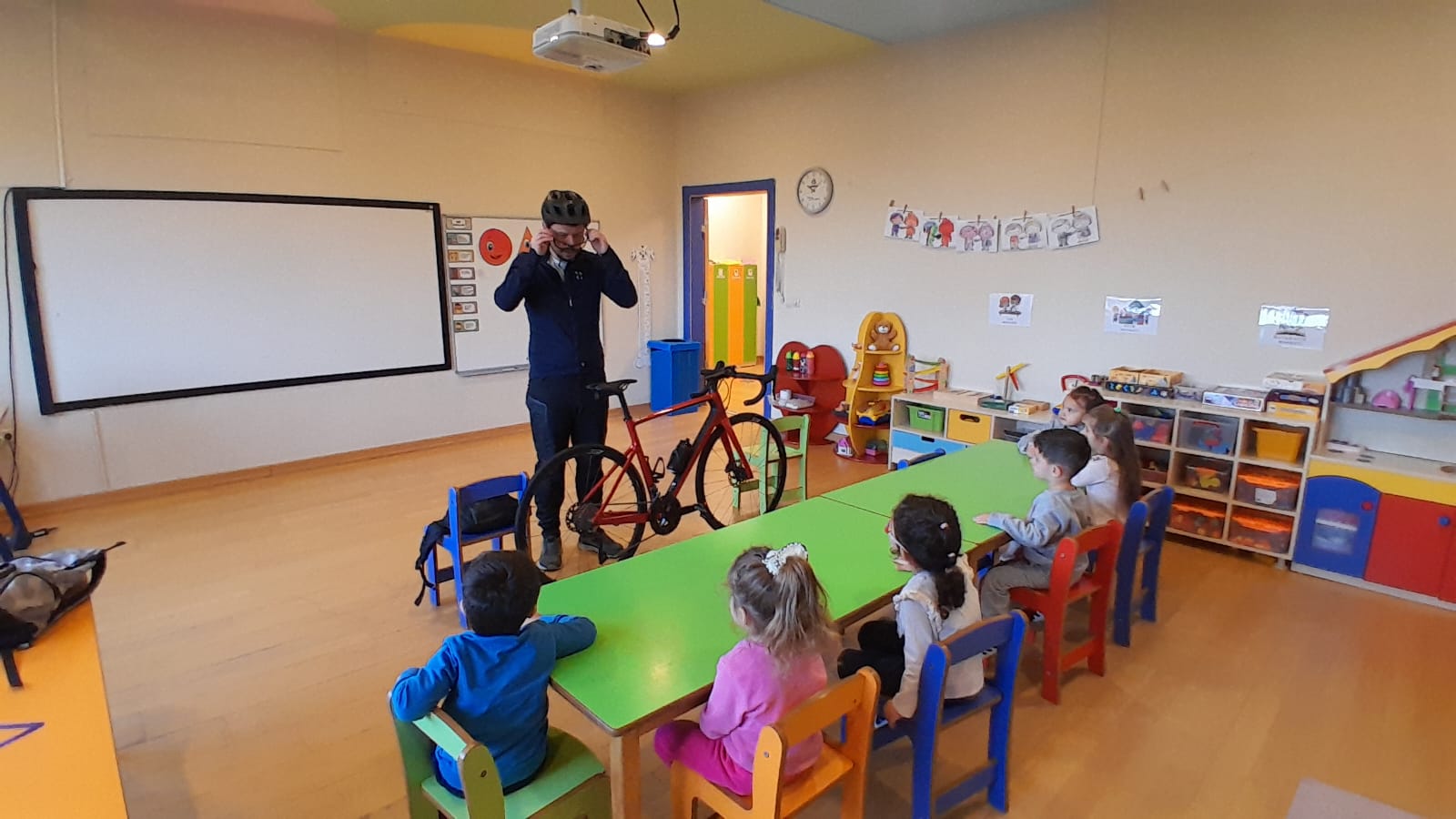 etkinliklerinde anaokulu öğrencilerimiz profesyonel bisikletin ekipmanlarını ve