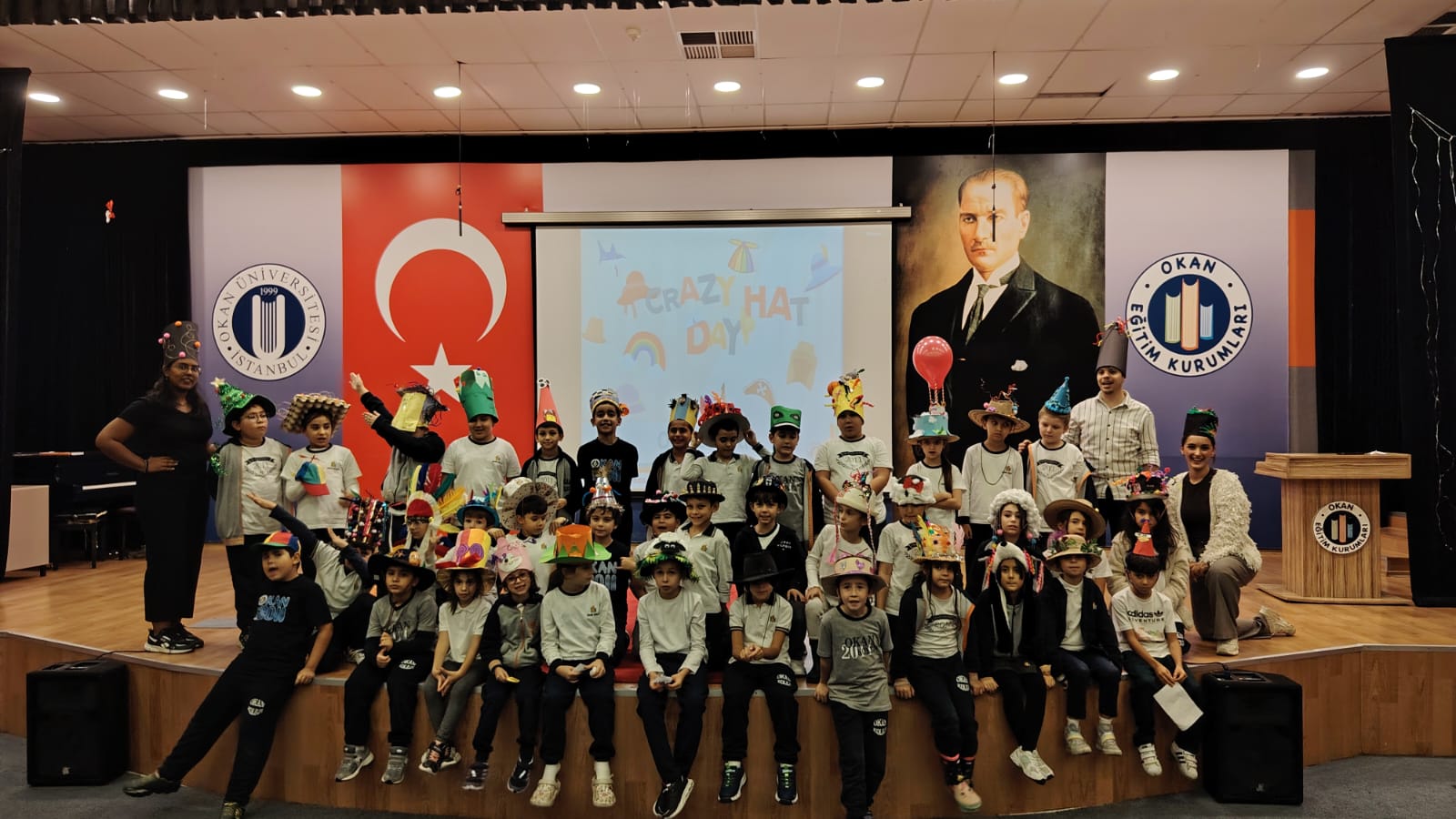 Okulumuzda gerçekleştirilen Crazy Hat Day etkinliğinde öğrencilerimiz, hayal güçlerini yansıtan rengârenk ve özgün şapkalarıyla güne neşe kattılar.